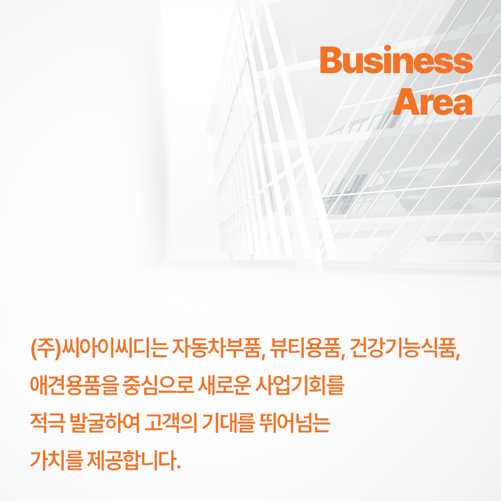 Global Trading Company (주)씨아이씨디 는 다양한 사업을 유기적으로 연계하고,대외적, 장기적으로는 K 글로벌화 추진하고 있습니다.내수적으로는 기업간의 유통구조를 통한 안정적인비즈니스 포트폴리오를 구축하고 있습니다. Contact What We do Who We are All Classes 한성구 대표 (공동창업자)- 해외 비즈니스 전략 수립 및 글로벌 시장 개척 - 해외 소싱 및 글로벌 파트너십 구축 - 해외 영업 및 거래 관리 총괄 이성준 파트너 (공동창업자)- 국내 및 중화권 시장 전략 수립 및 영업 활동 총괄 - 국내·중화권 소싱 및 구매 전략 관리 - 주요 국내 기업 및 중화권 파트너사 협력 네트워크 관리 김성재 파트너 (공동창업자)- 자회사 (주)월드와이드메디컬 총괄 경영 we work in All Regions 전통산업의 유지와 미래산업의 수용을 통하여 다양한 세대와 광범위한 국가에게 감동을 주는 것, 그것이야말로 (주)씨아이씨디의 미션입니다. More About Us © 2023 All Rights Reserved. Facebook-f Twitter